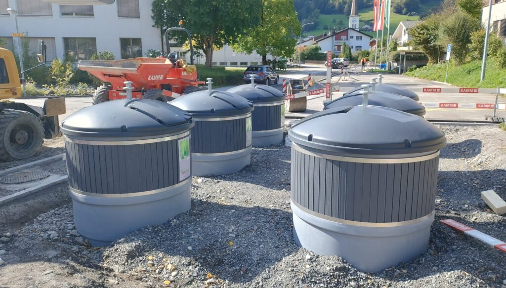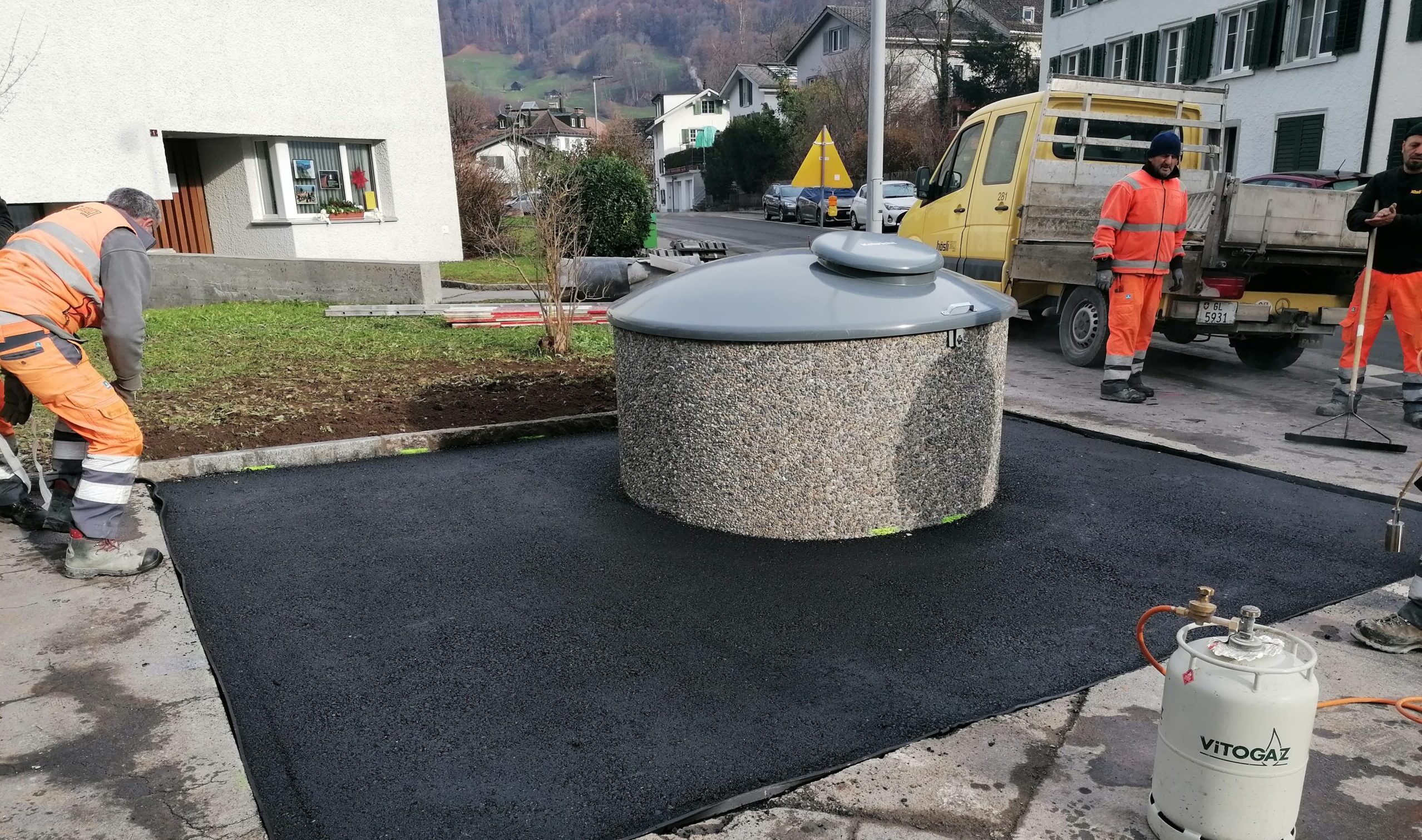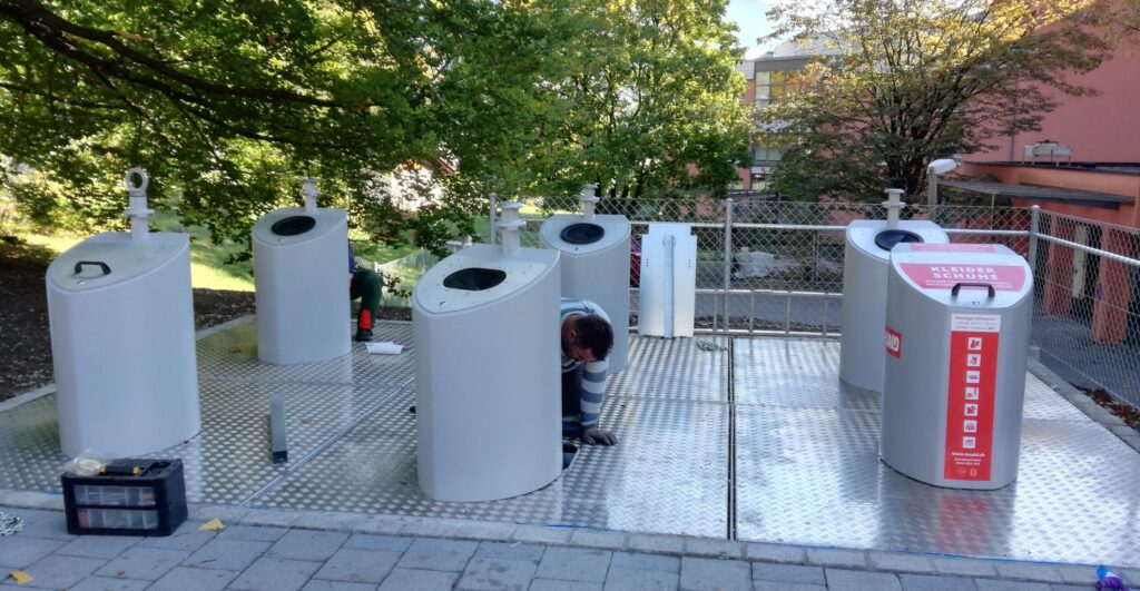 Arbeiten: Zwei Sammelstellen mit 1 Halbunterflurcontainer, eine Sammelstelle mit 1 Unterflurcontainer